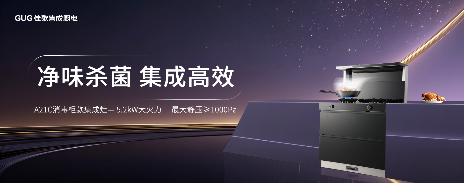 佳歌A23消毒柜集成灶:凈煙猛火消毒一機(jī)到位!