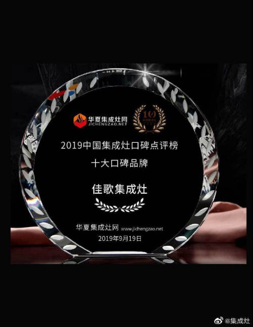 一直以來,佳歌集成灶始終致力于為千萬中國家庭創(chuàng)造健康、環(huán)保、科技、智能的綠色健康廚房。此次獲得“中國集成灶最具消費(fèi)者喜愛十大品牌”,是對(duì)佳歌的品牌、質(zhì)量、技術(shù)等方面最大的肯定。