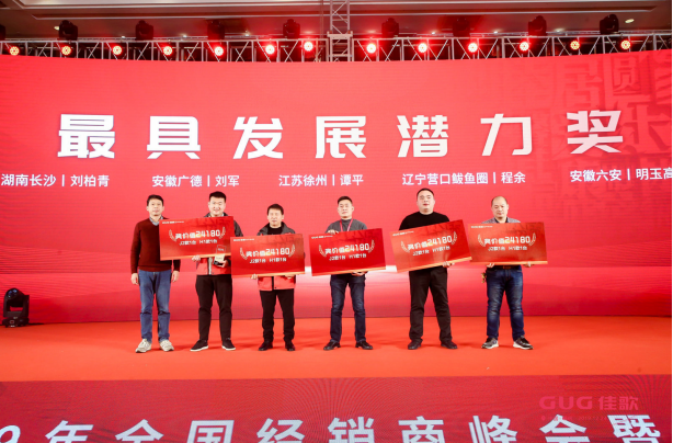 袁總表示佳歌會始終堅持以客戶為本,以經銷商為本,實現(xiàn)共贏。佳歌能在短時間內收獲如此成就,離不開在場工作人員及全體經銷商的付出和陪伴。未來,佳歌還會加強終端政策幫扶,增加全國各區(qū)域網點鋪設,以強勢的姿態(tài)面對接下來的挑戰(zhàn)。袁總的致辭極大的增強了大家的信心,贏得了經銷商的一致贊賞。
