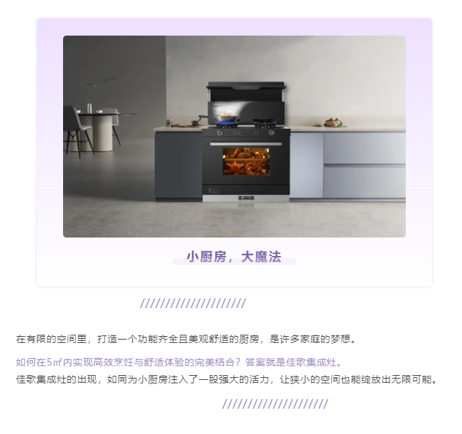 噶city的佳歌集成灶,讓烹飪夢想照進(jìn)現(xiàn)實(shí)!